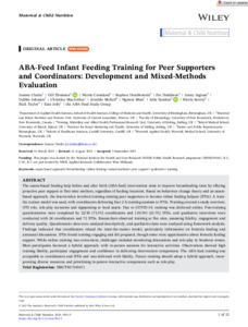 ABA‐Feed Infant Feeding Training for Peer Supportersand Coordinators: Development and Mixed‐Methods Evaluation.